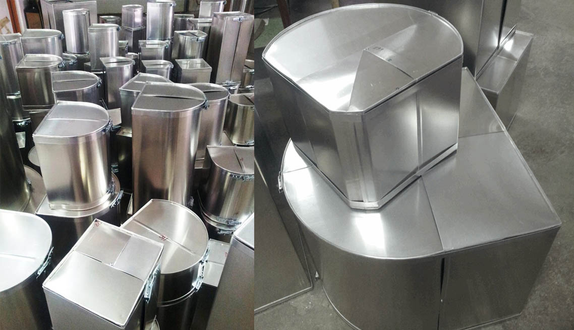 Acestea se pot realiza din 2, 3 sau mai multe părţi, din tablă de aluminiu, inox, tablă zincată, AluZinc, tablă de aluminiu striată Stucco de grosimi diferite în funcţie de diametrul nominal sau dimensiunile solicitate: